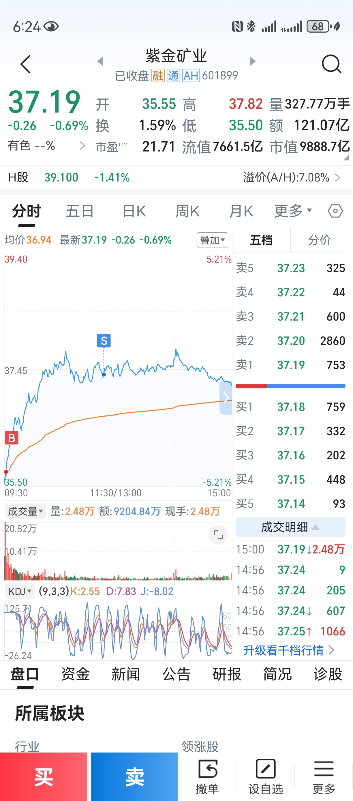 $紫金矿业(SH601899)$ 唉 我没这个财运T了7手,周一起飞了