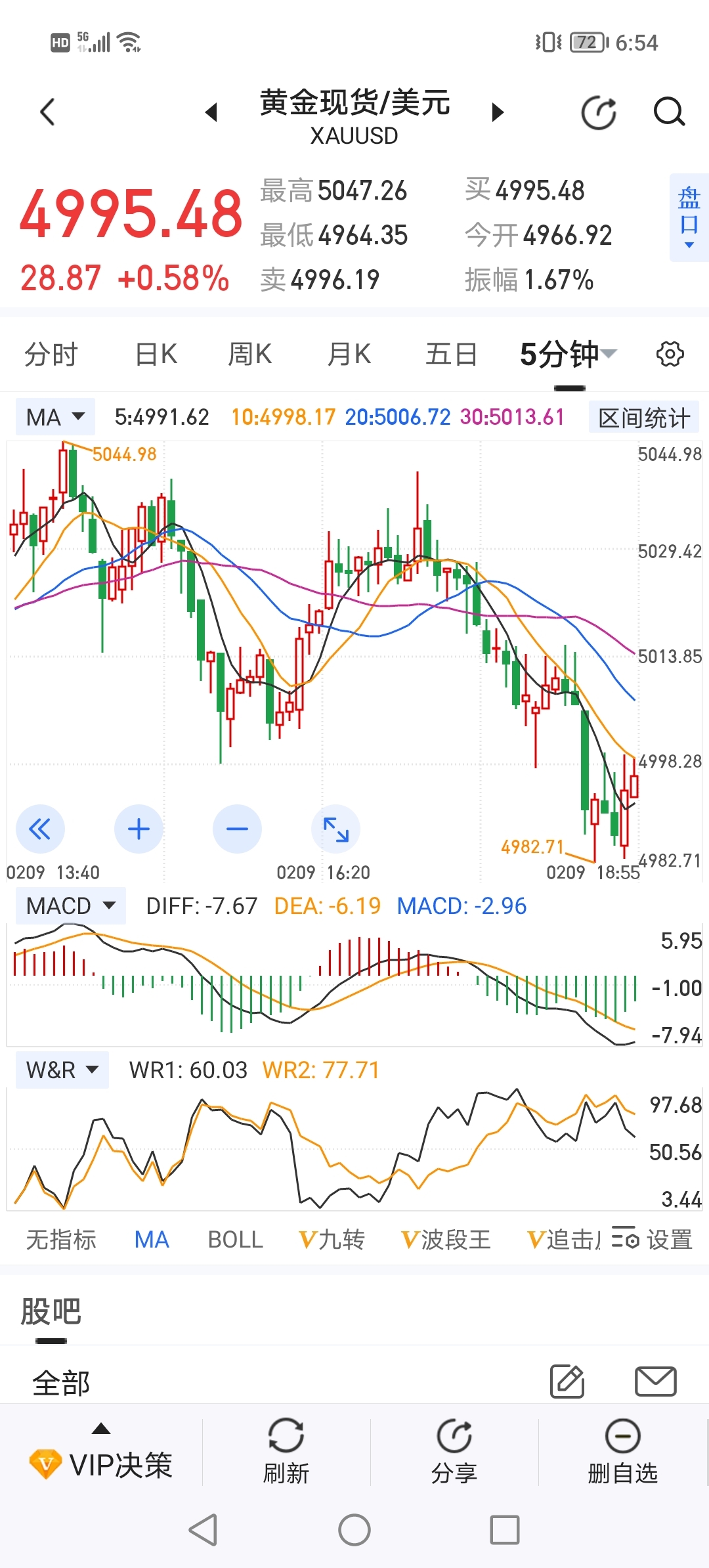 $紫金矿业(SH601899)$ 2月9日盘后,现货黄金已跌超50美元