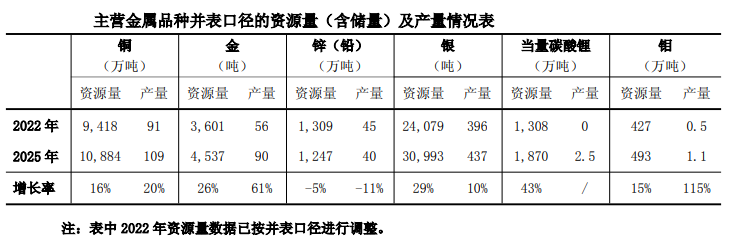 相关数据显示,2022年紫金矿业矿产铜产量为91万吨,到2025年增长至109万吨,三年产量增长20%。