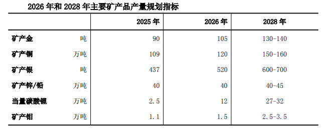 根据紫金矿业2026-2028年主要矿产品产量规划,公司计划到2028年将矿产金产量进一步提升至130-140吨,135吨的规划产量中位数相当于较2025年再增50%。