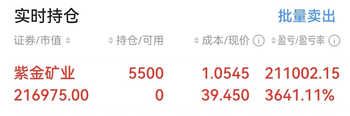 $紫金矿业(SH601899)$ 陈小群一年赚20倍,我4个月赚36倍。
