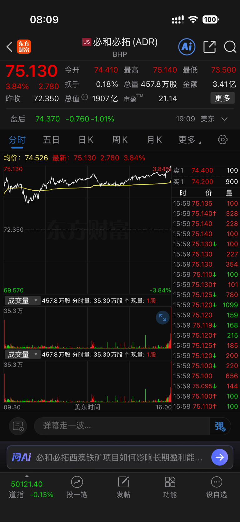 昨晚美股金铜大涨,加上全球排名第一的采矿公司必和必扩大涨,稳了