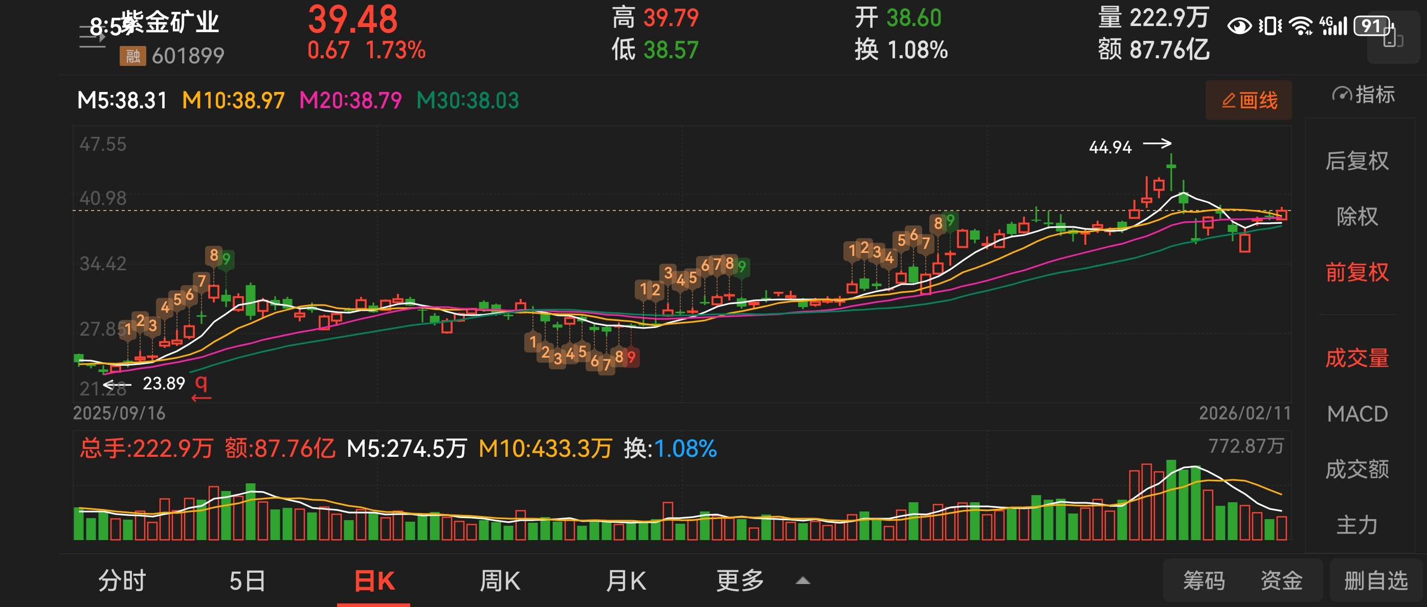 $紫金矿业(SH601899)$ 周四分享紫金矿业,低吸关注!