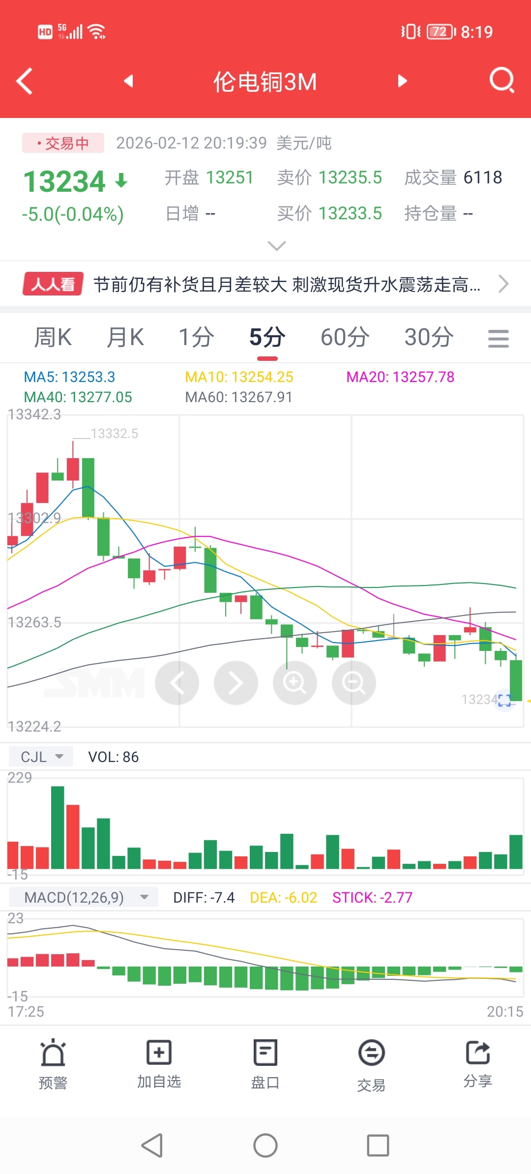 $紫金矿业(SH601899)$ 2月12日夜盘,伦铜跌势不止