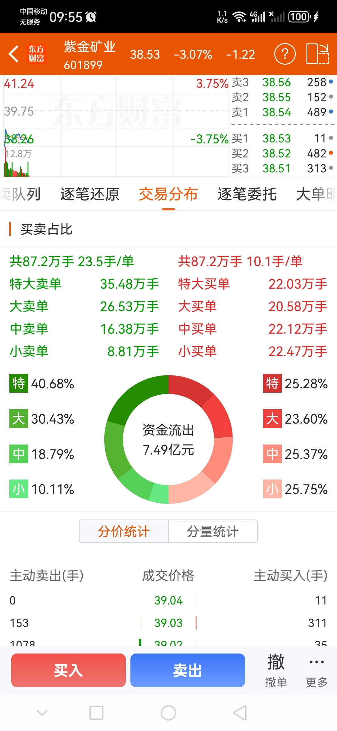 $紫金矿业(SH601899)$ 流出7个多亿了