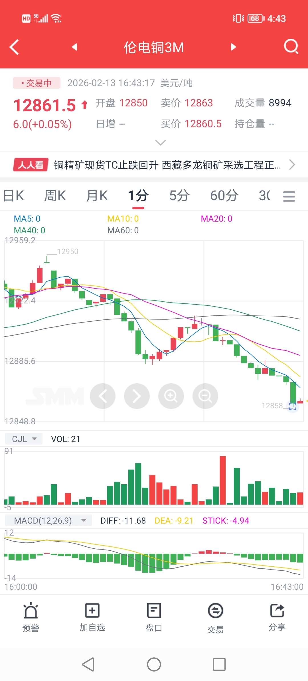 $紫金矿业(SH601899)$ 13日盘后,伦铜再一次大跌近100美元