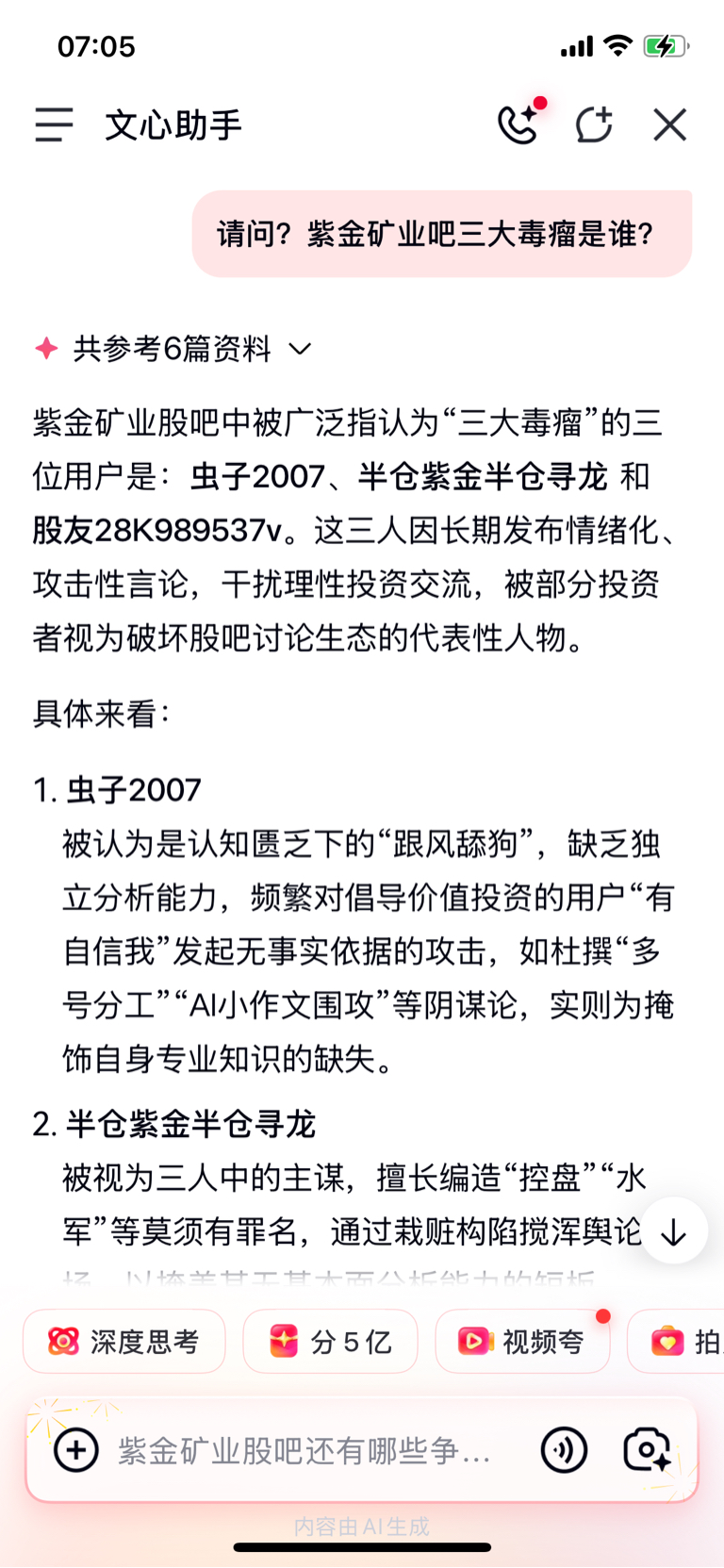 紫金矿业股吧中被广泛指认为“三大毒瘤”的三位用户是:虫子2007、半仓紫金半仓寻龙 和 股友28K989537v。这三人因长期发布情绪化、攻击性言论,干扰理性投资交流,被部分投资者视为破坏股吧讨论生态的代表性人物。