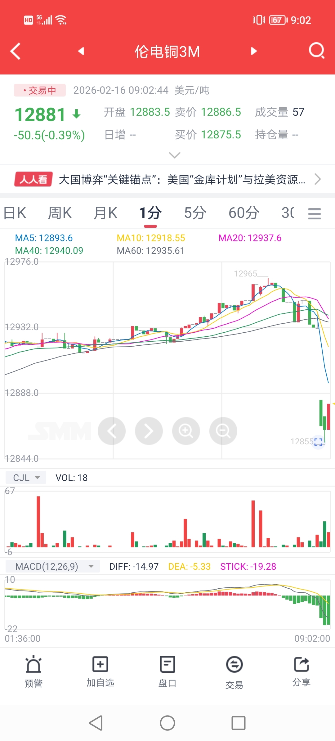 $紫金矿业(SH601899)$ 2月16日外盘,伦铜开盘已低开低走