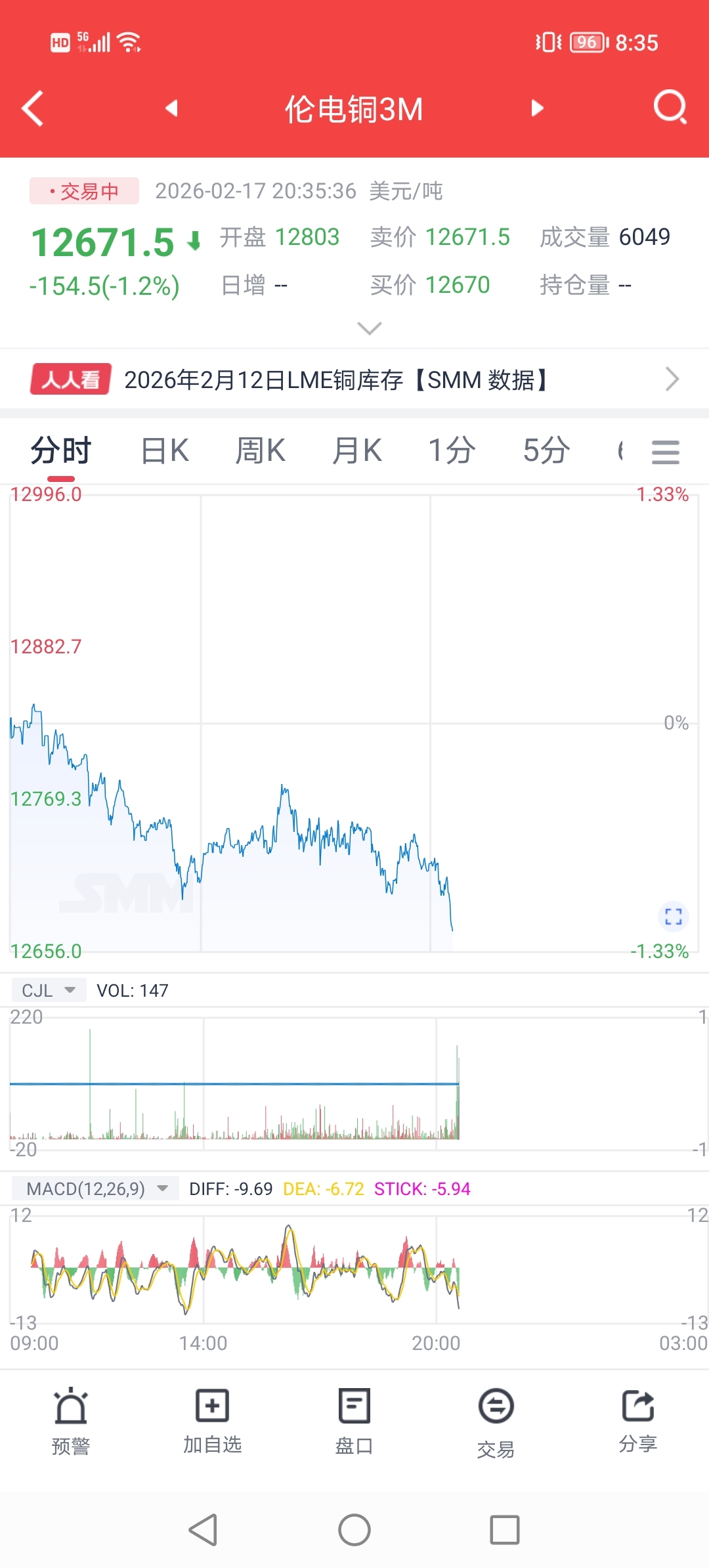 $紫金矿业(SH601899)$ 2月17日夜盘,此时此刻伦铜日内已暴跌超260美元