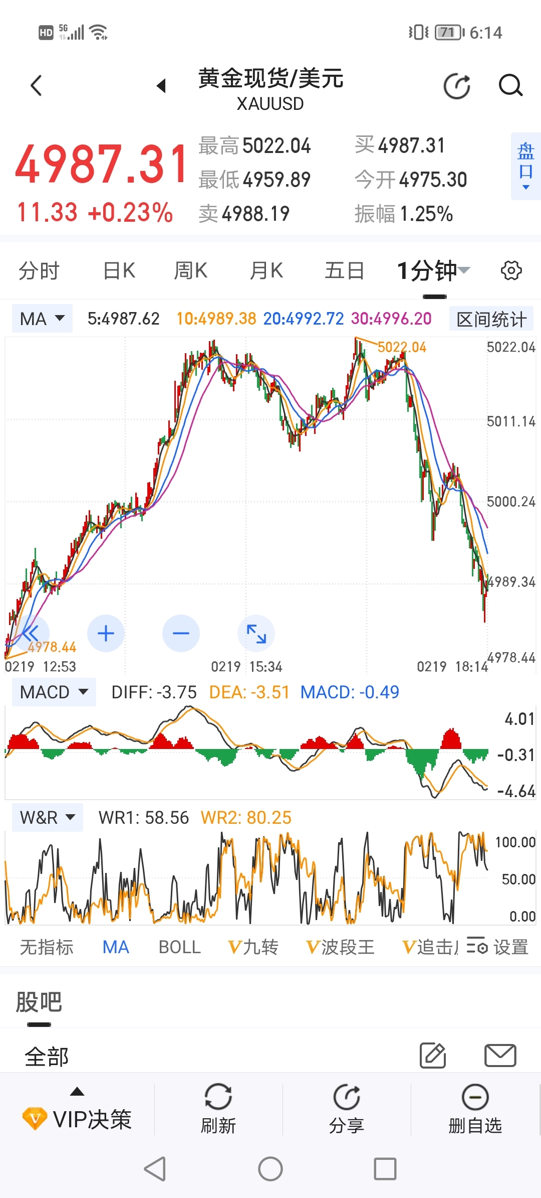$紫金矿业(SH601899)$ 此时此刻,黄金已经高位跳水暴跌了