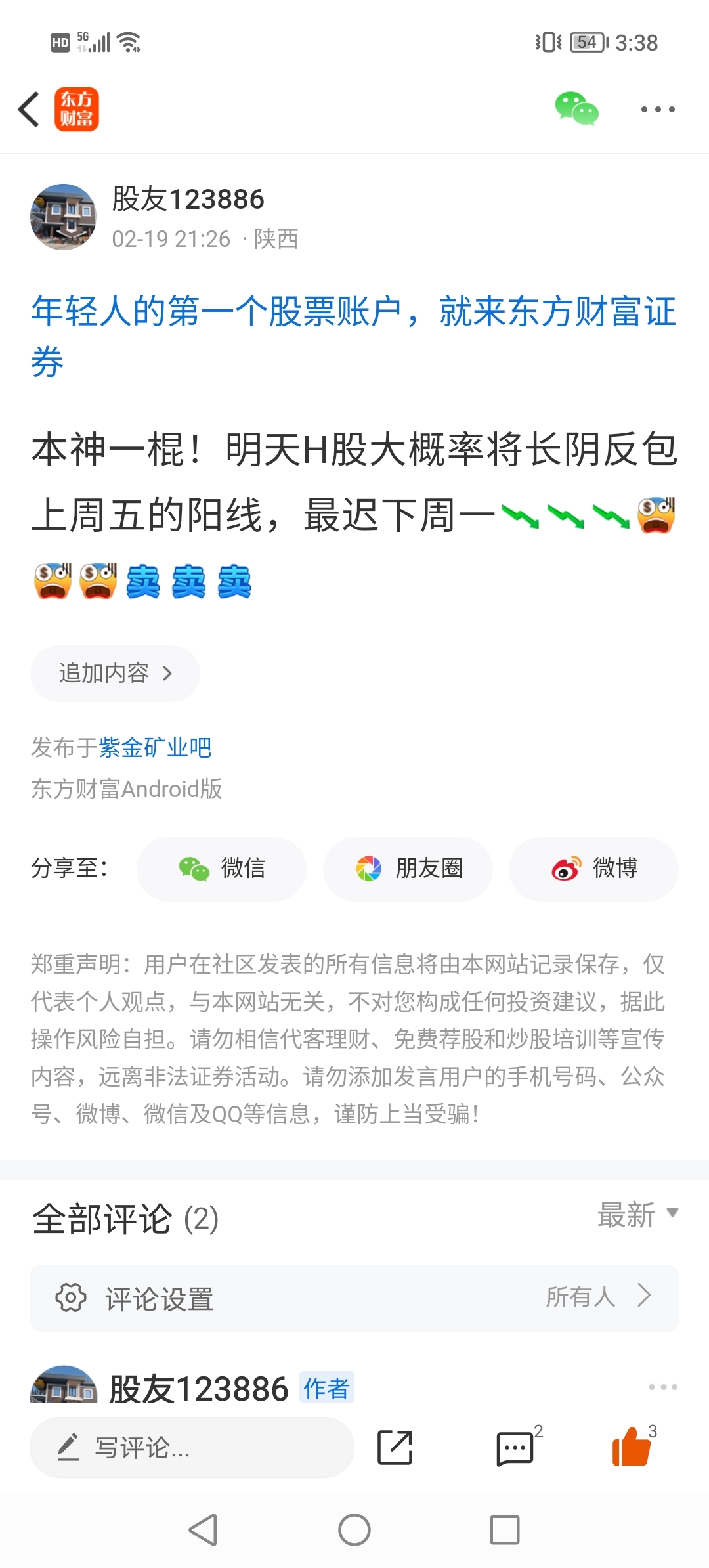 温馨提示: 1.根据《证券法》规定,禁止编造、传播虚假信息或者误导性信息,扰乱证券市场;2.用户在本社区发表的所有资料、言论等仅代表个人观点,与本网站立场无关,不对您构成任何投资建议。用户应基于自己的独立判断,自行决定证券投资并承担相应风险。《东方财富社区管理规定》