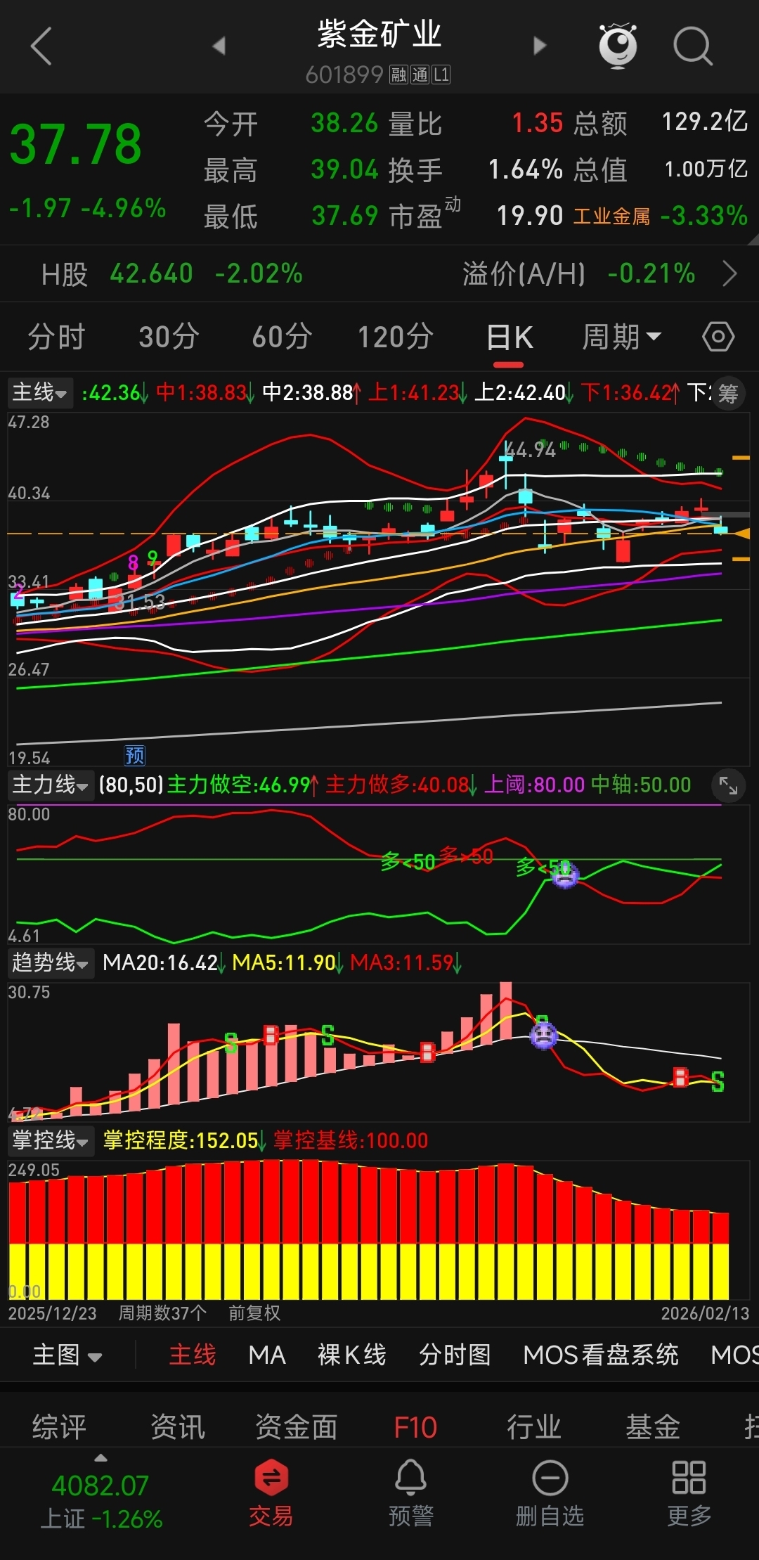 $紫金矿业(SH601899)$ 日线继续调整。