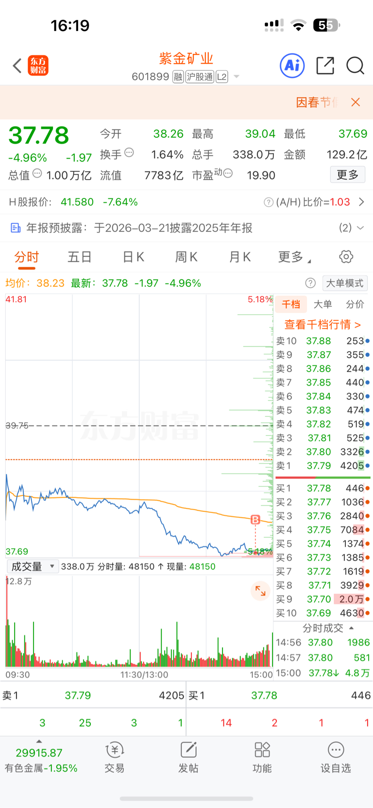 $紫金矿业(SH601899)$ 年前最后一个交易日就说了初八会涨5个点,所以果断尾盘加仓