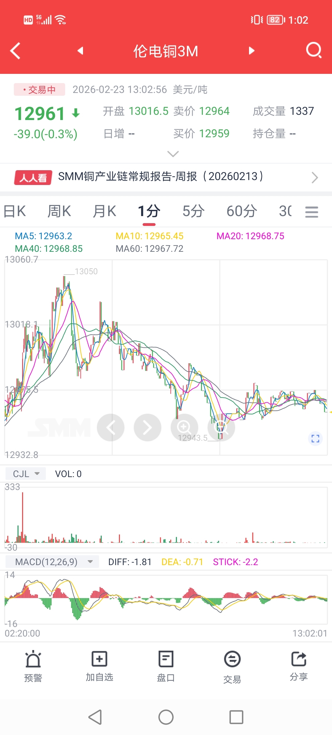 $紫金矿业(SH601899)$ 23日,伦铜小幅冲高后回落,目前已较日高大跌超100美元