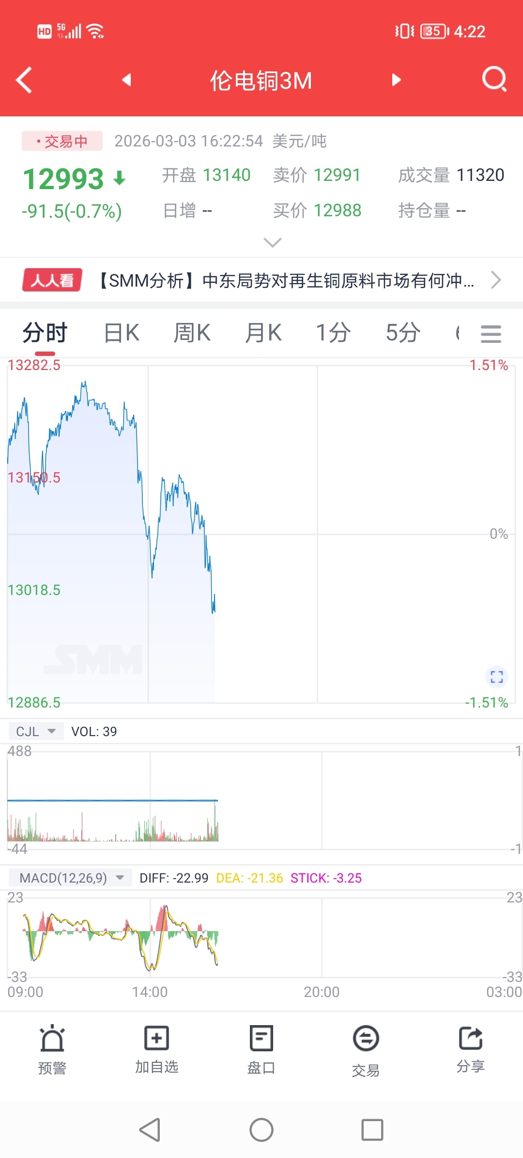$紫金矿业(SH601899)$ 3月3日盘后,伦铜已经暴跌近300美元