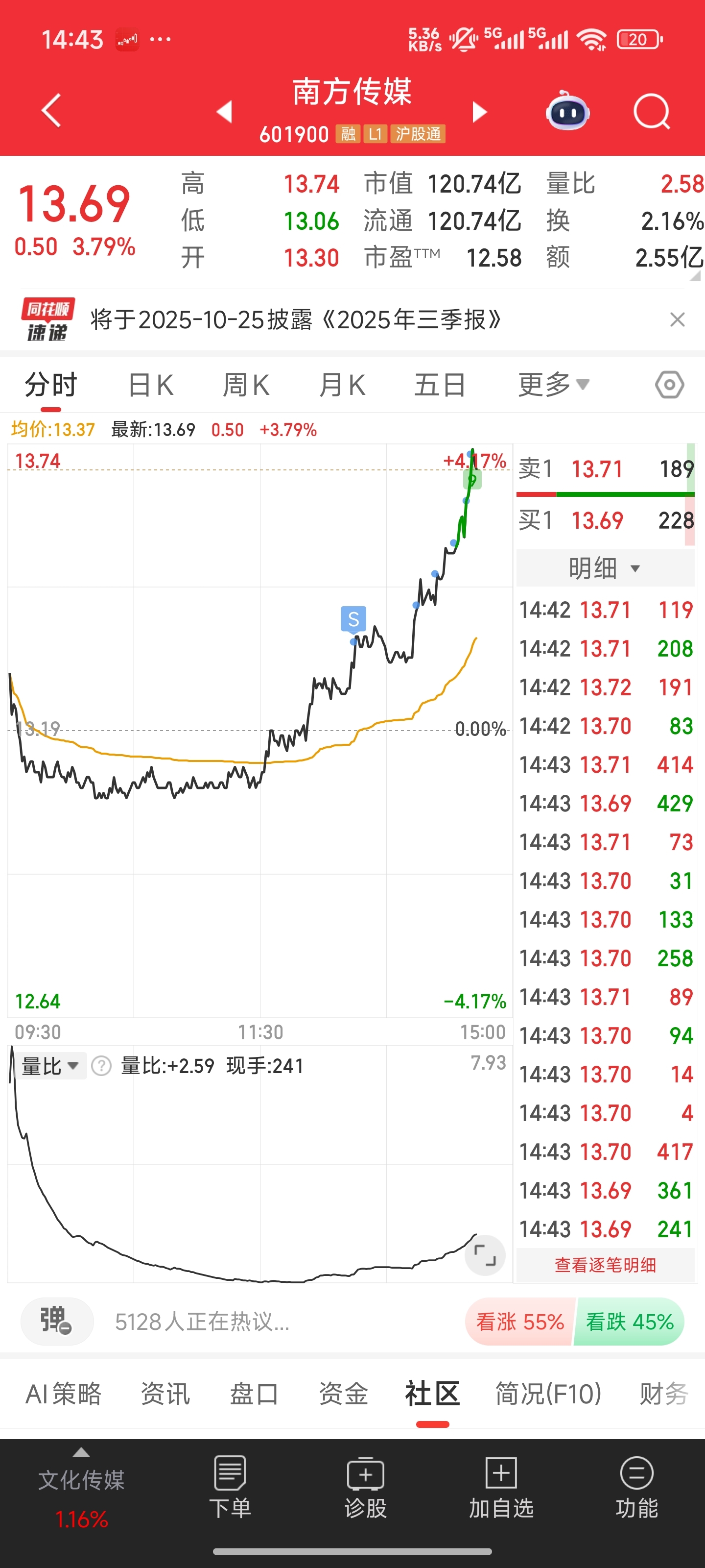 $南方传媒(SH601900)$ 还能下来再给机会嘛