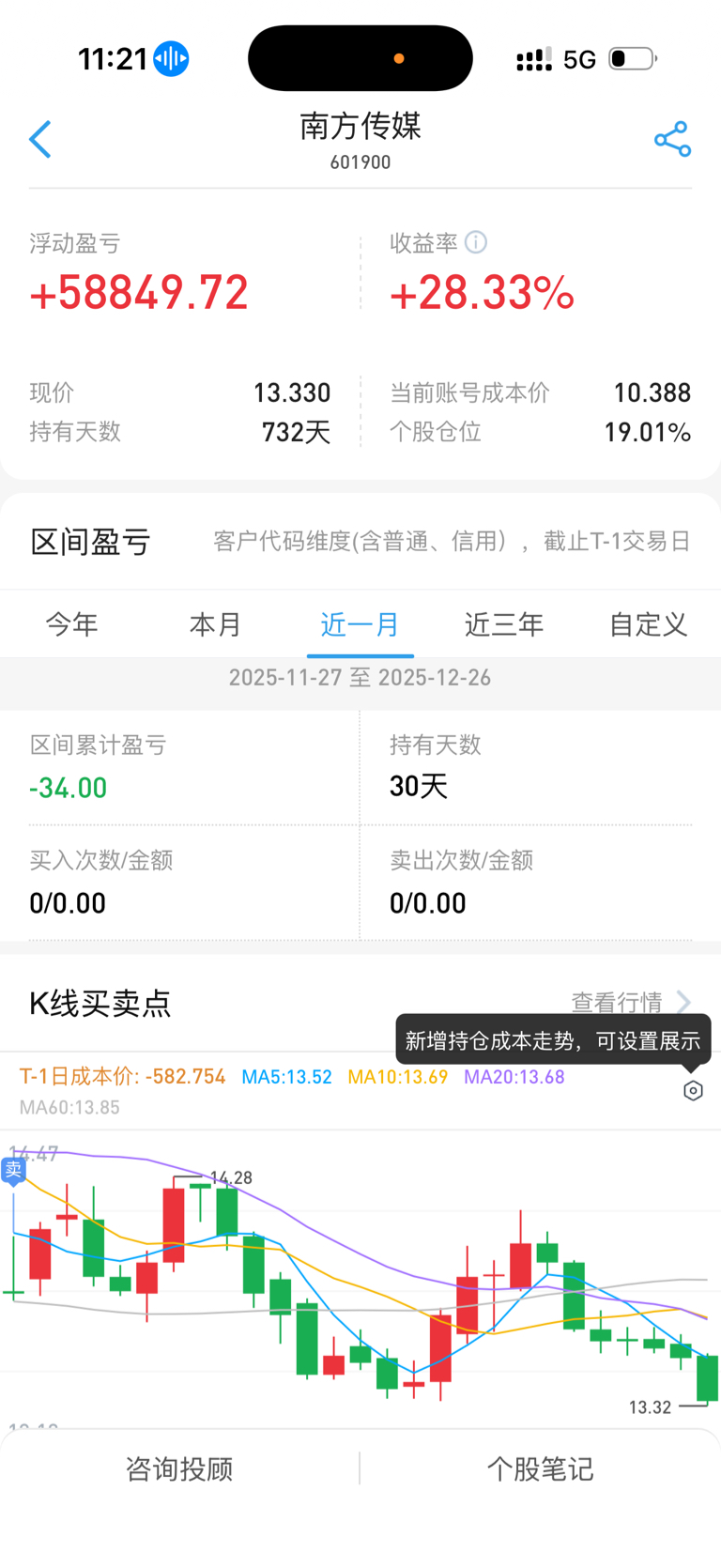 卖出你一个多月了,以为卖在低点,今天看了一下你居然连续6连跌,没管住手又试一次