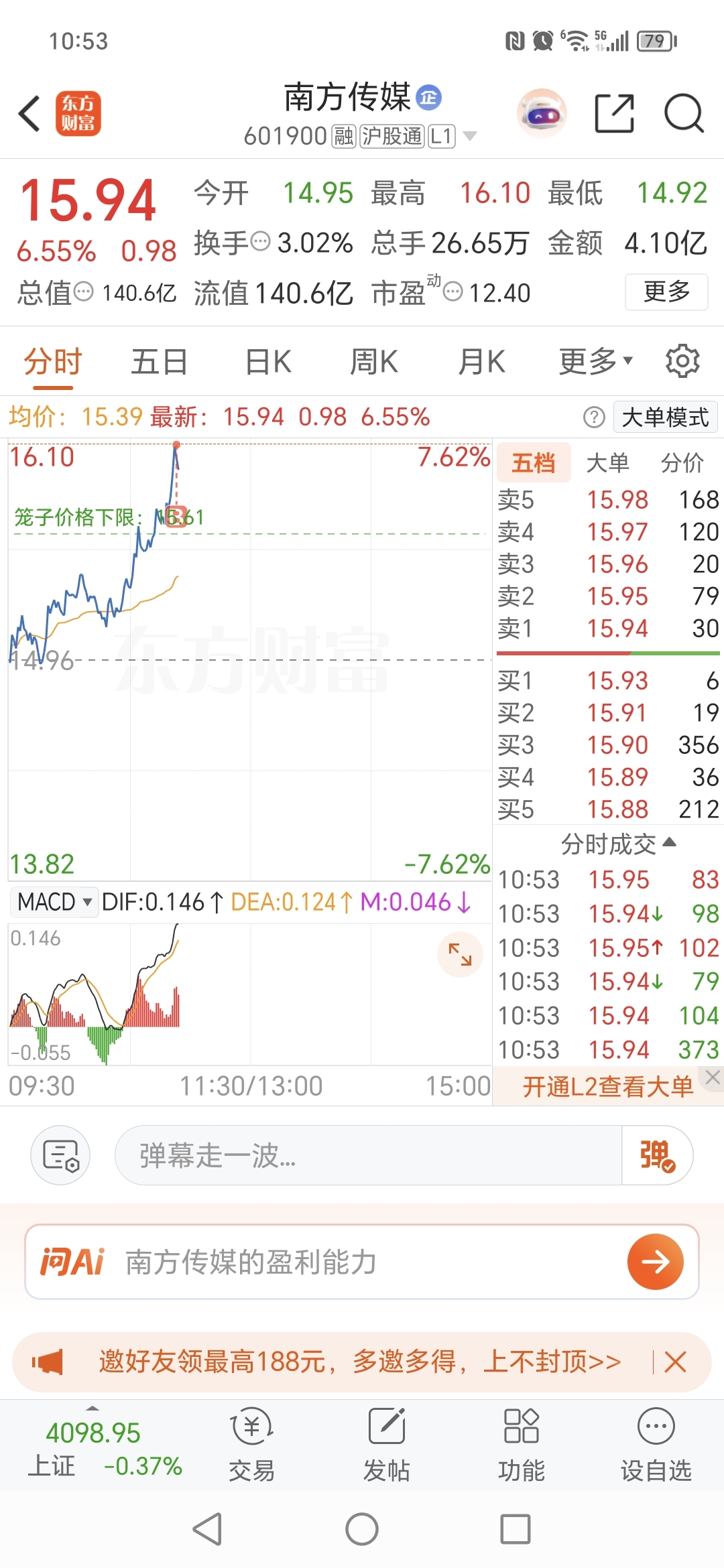$南方传媒(SH601900)$ 我去,够精致了,13没有买一直涨,买了就跌