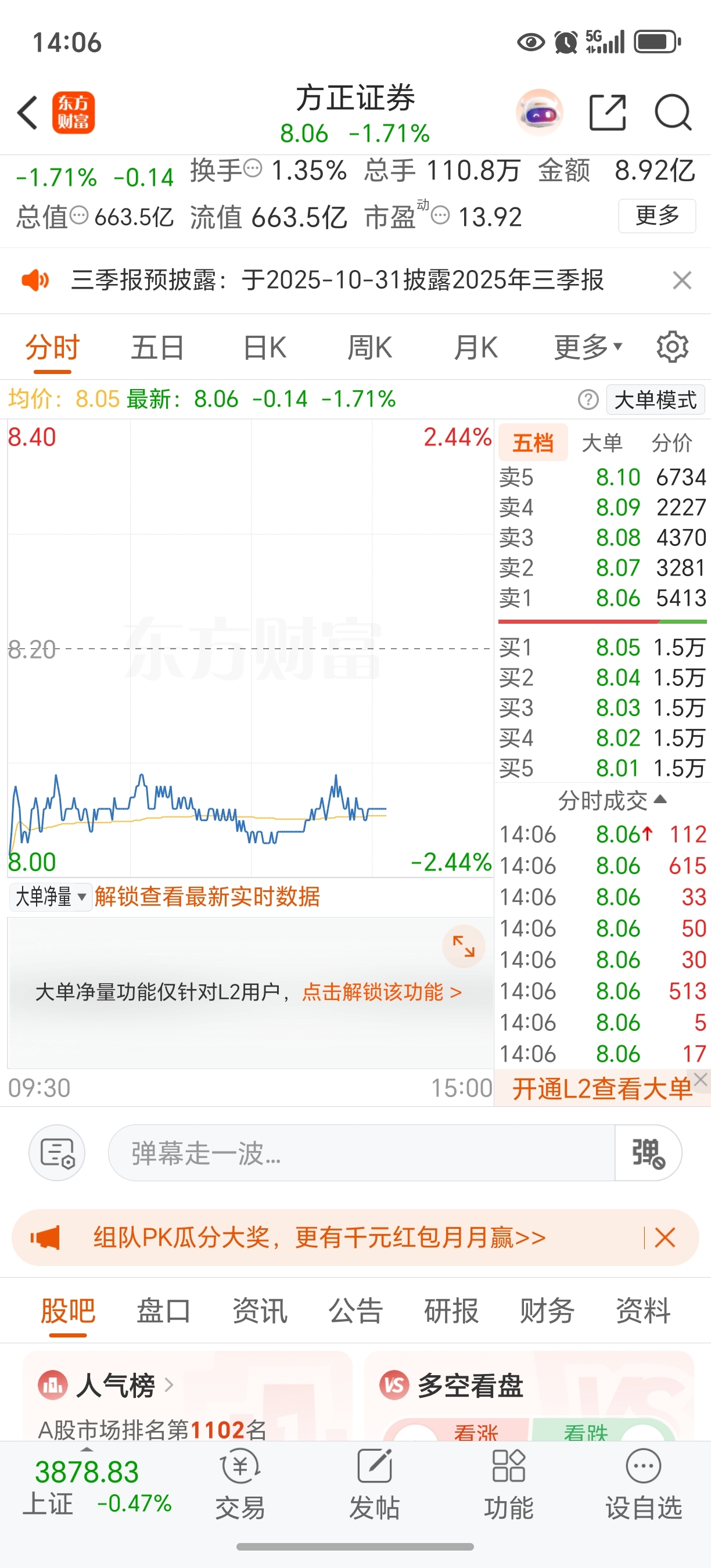 $方正证券(SH601901)$ 看看挂的买盘,简直是赤裸裸的操纵。整个一副出工不出力的样子。