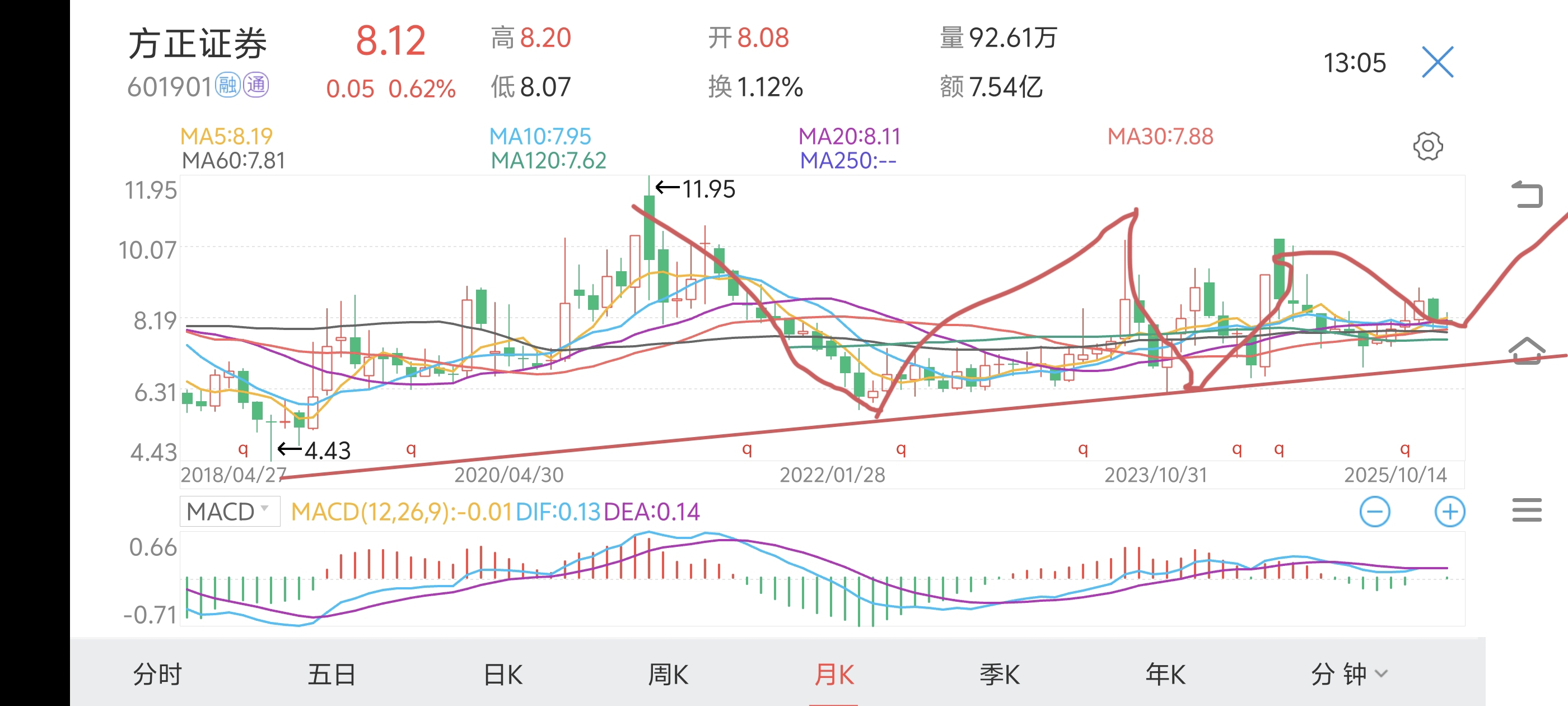$方正证券(SH601901)$ 月线看,后面可以爆拉了