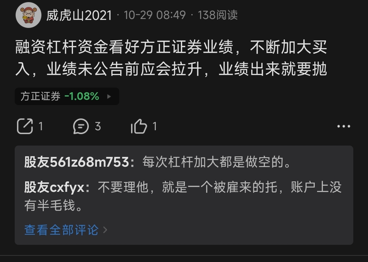 $方正证券(SH601901)$ 融资杠杆资金要出股价才能起来。