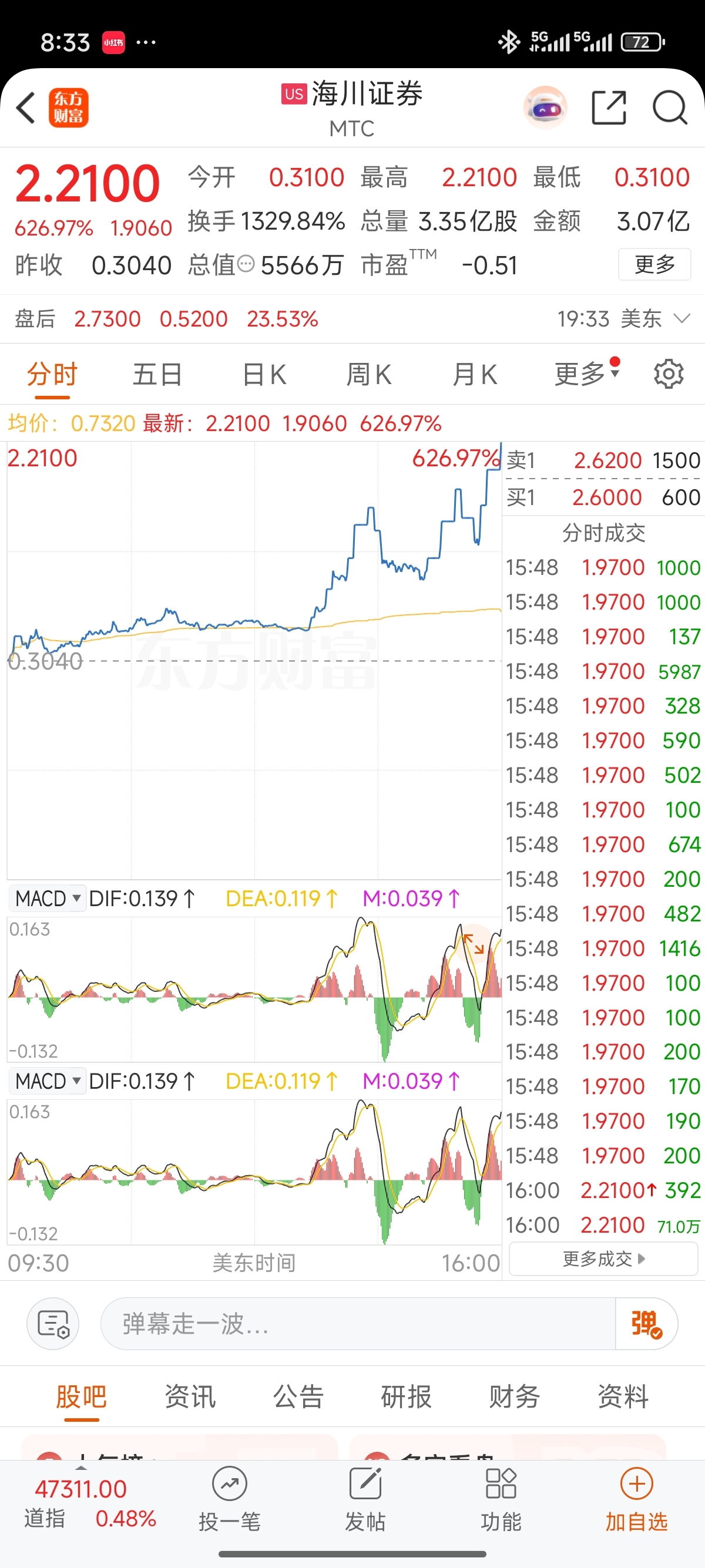 海川证券一天翻6倍,,,盘后还涨30%金融强国!看你压盘压到什么时候