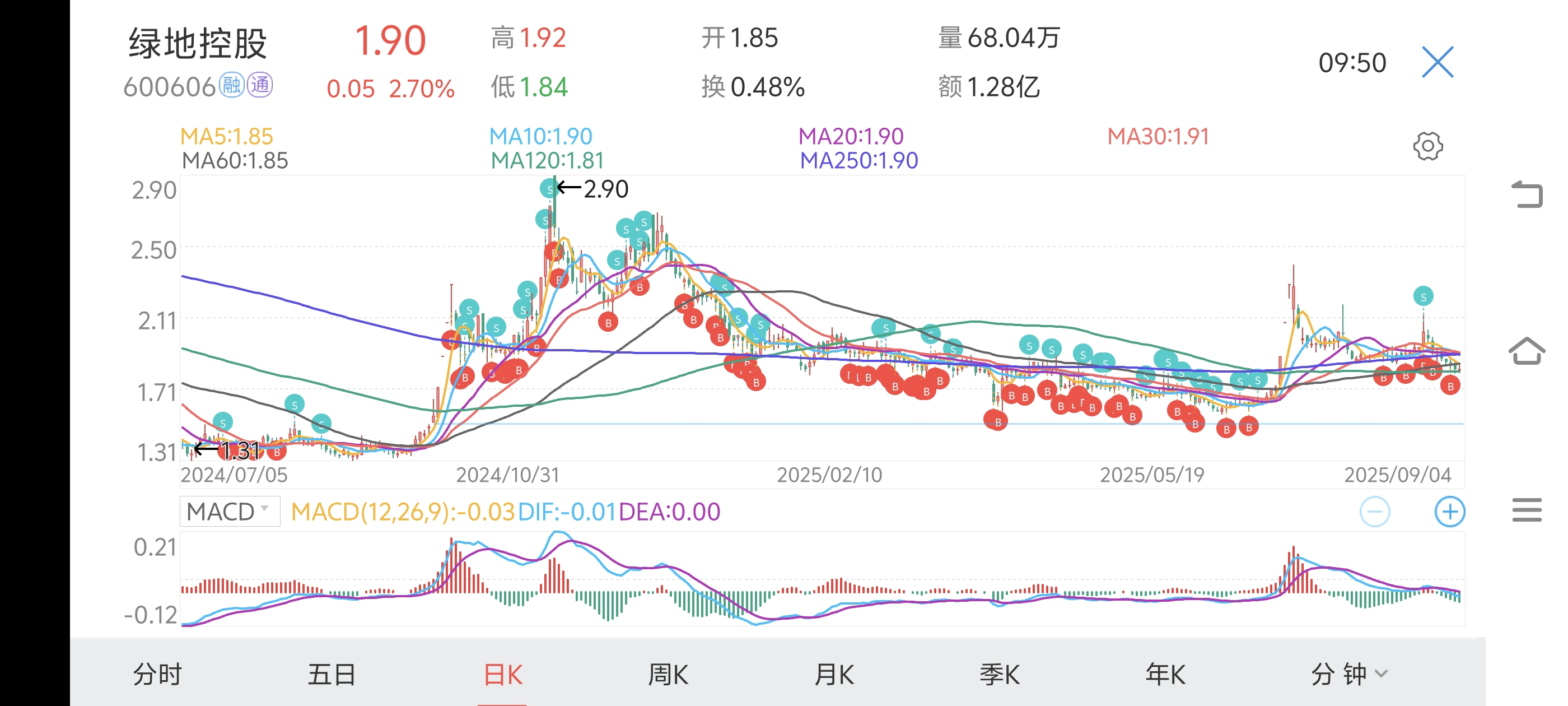 绿地每次都是卖在大涨前,1.3卖涨到2.9,1.6卖涨到2.4,这次死拿