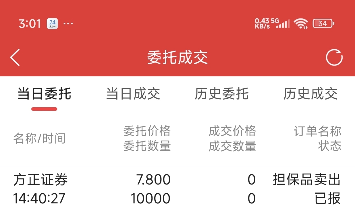 $方正证券(SH601901)$ 请问为什么两点四十的单子尾盘没有成交?2点57分时7.80的卖单只有5000手左右,那里面肯定有我的单子,而尾盘成交1.2万手,为什么没成?
