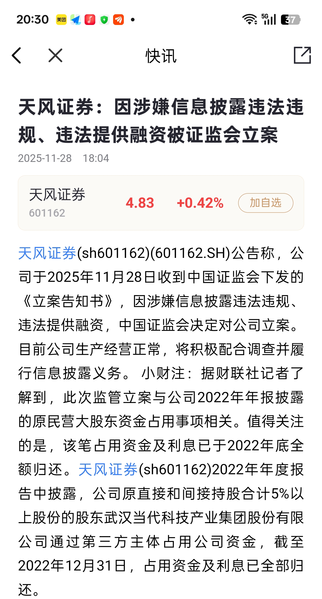 证券股今年太背时了,前有第一创业立案带崩版块,又来天风证券立案又要带崩版块。