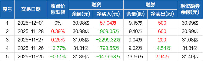 方正证券:融资净买入57.04万元,融资余额30.98亿元(12-01)