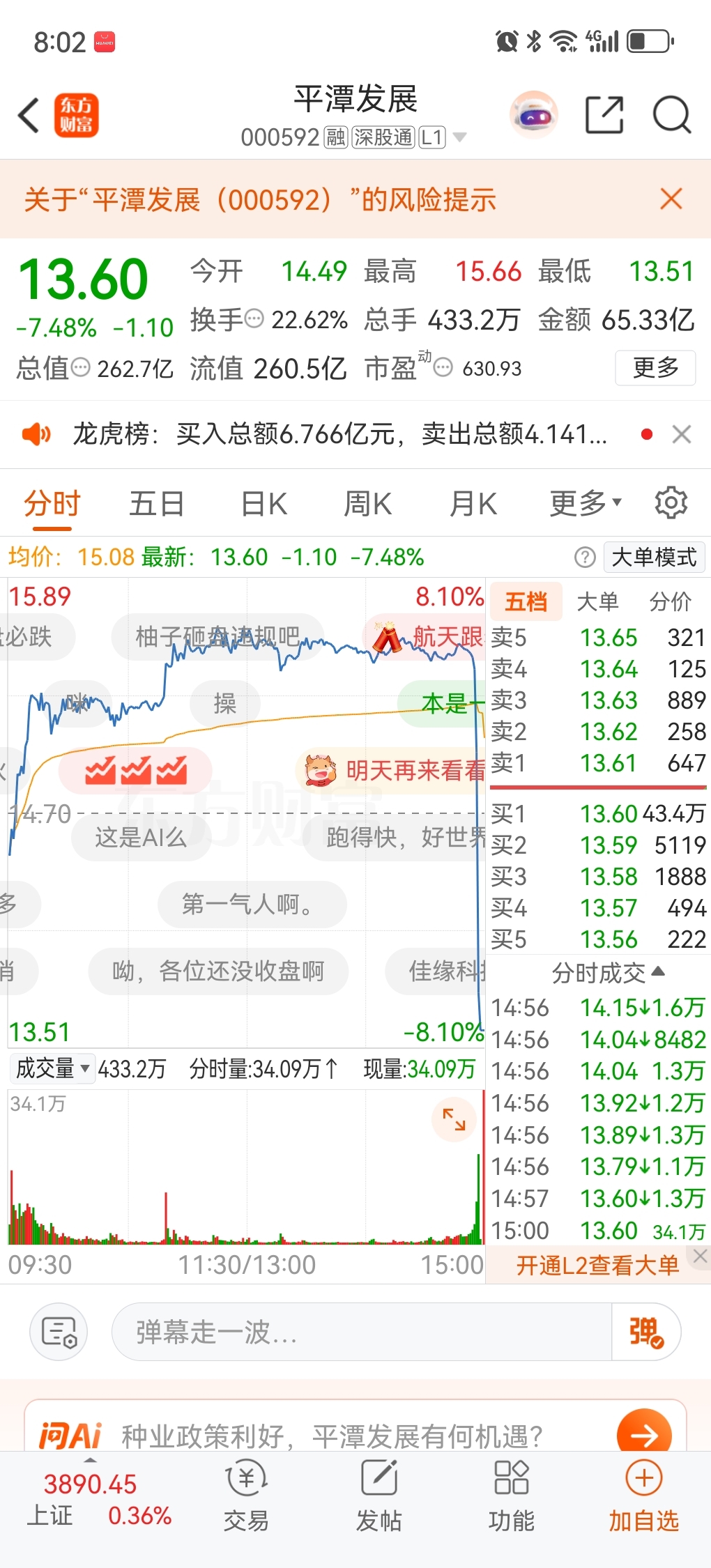 $方正证券(SH601901)$ 看看平潭发展,晚上八点了还这么热闹,都跟打了兴奋剂似的,再看看方正,个个跟霜打的茄子一样。