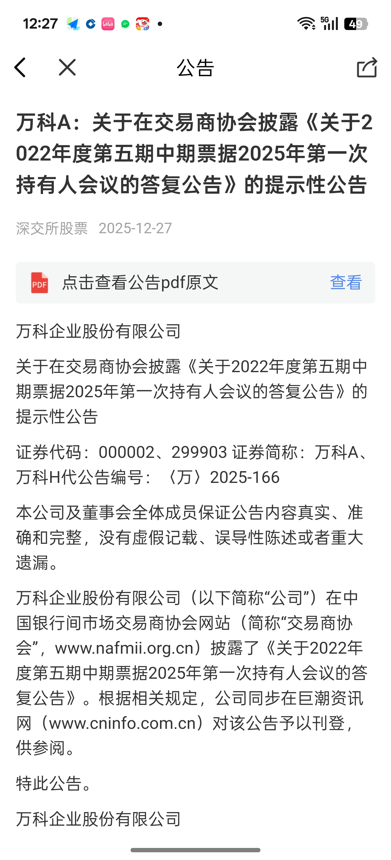 万科债务22万科MTN005展期提出5个方案全部被债权人否了,给续了30天宽限期