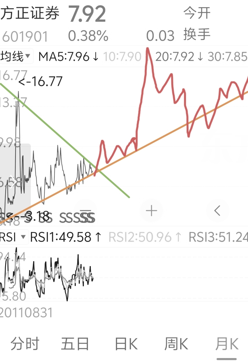 月线看涨!黄色是月线下限,绿线是压制线,突破后前途无量!叠加平安重组27年就是直