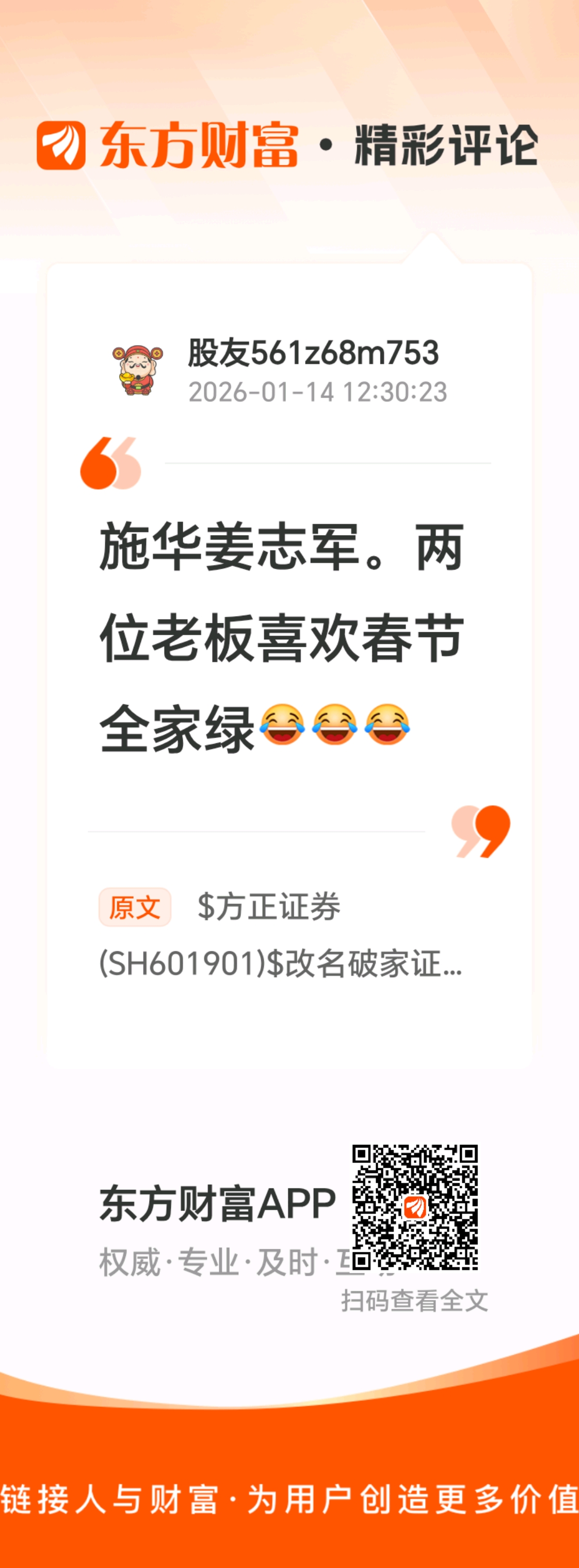 $方正证券(SH601901)$ 改名破家证券,春节快到了,都挣不了一分钱