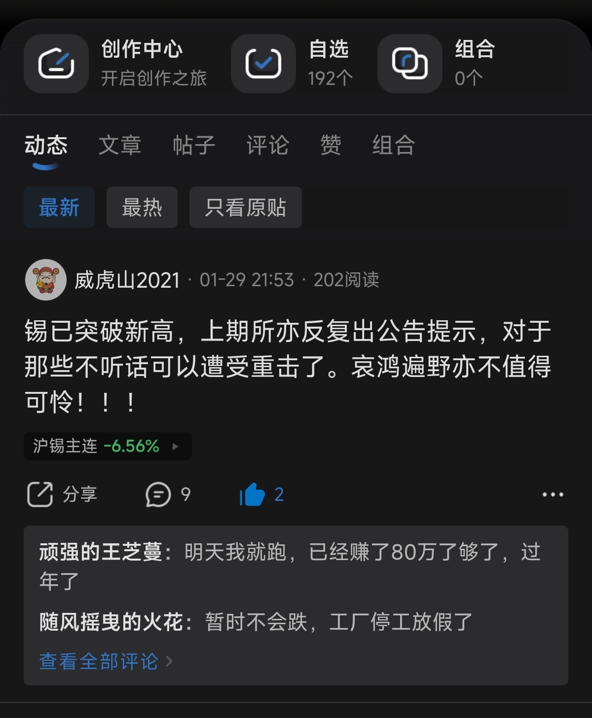 温馨提示: 1.根据《证券法》规定,禁止编造、传播虚假信息或者误导性信息,扰乱证券市场;2.用户在本社区发表的所有资料、言论等仅代表个人观点,与本网站立场无关,不对您构成任何投资建议。用户应基于自己的独立判断,自行决定证券投资并承担相应风险。《东方财富社区管理规定》