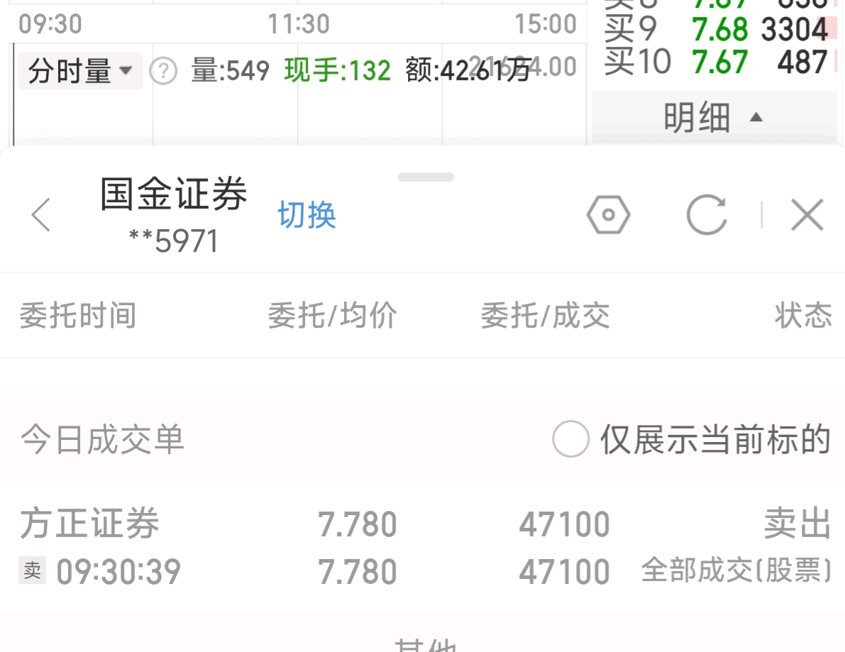 高开太多,今天证券没啥潜力了。先卖一点。