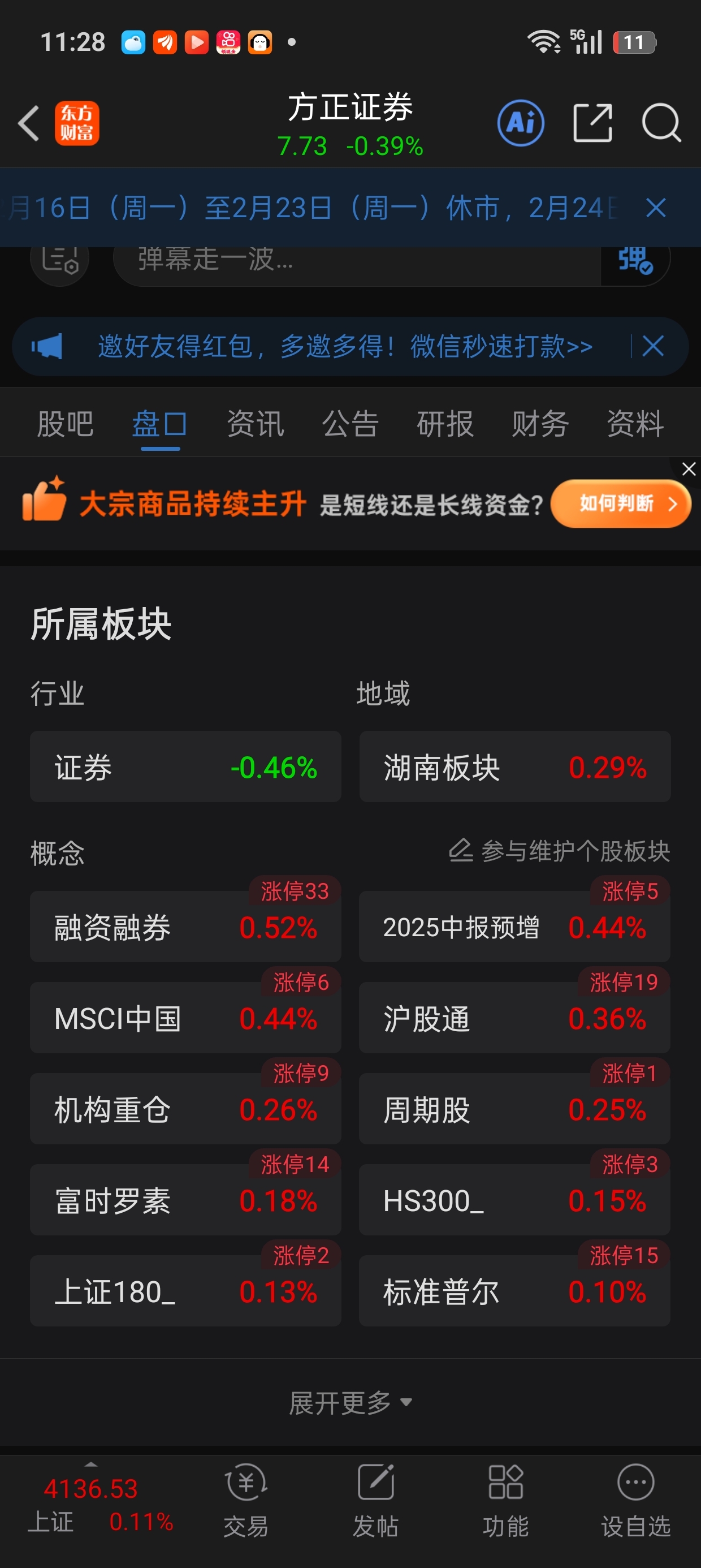 $方正证券(SH601901)$ 券商是刹车片
