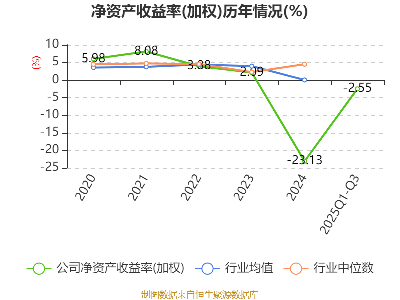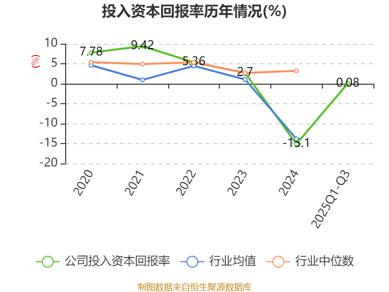 盈利能力方面, 2025年前三季度公司加权平均净资产收益率为-2.55%,同比上升10.63个百分点。公司2025年前三季度投入资本回报率为0.08%,较上年同期上升9.31个百分点。