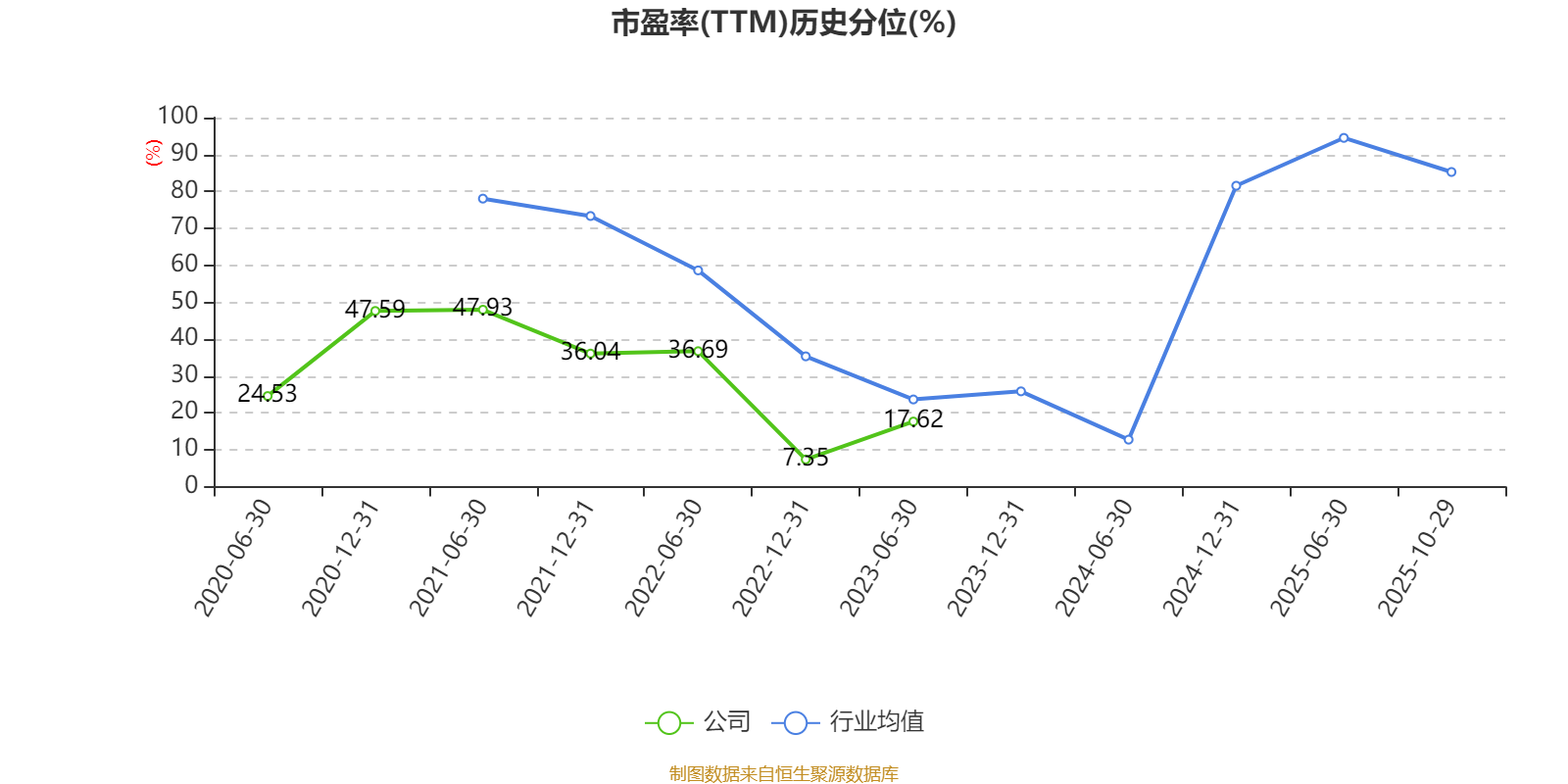 市盈率、市净率为负时,不显示当期分位数,会导致折线图中断。