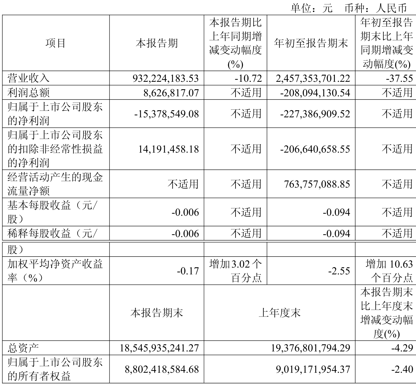 中证智能财讯京运通(601908)10月30日披露2025年第三季度报告。前三季度公司实现营业总收入24.57亿元,同比下降37.55%;归母净利润亏损2.27亿元,上年同期亏损14.09亿元;扣非净利润亏损2.07亿元,上年同期亏损14.69亿元;经营活动产生的现金流量净额为7.64亿元,上年同期为-3.43亿元;报告期内,京运通基本每股收益为-0.094元,加权平均净资产收益率为-2.55%。