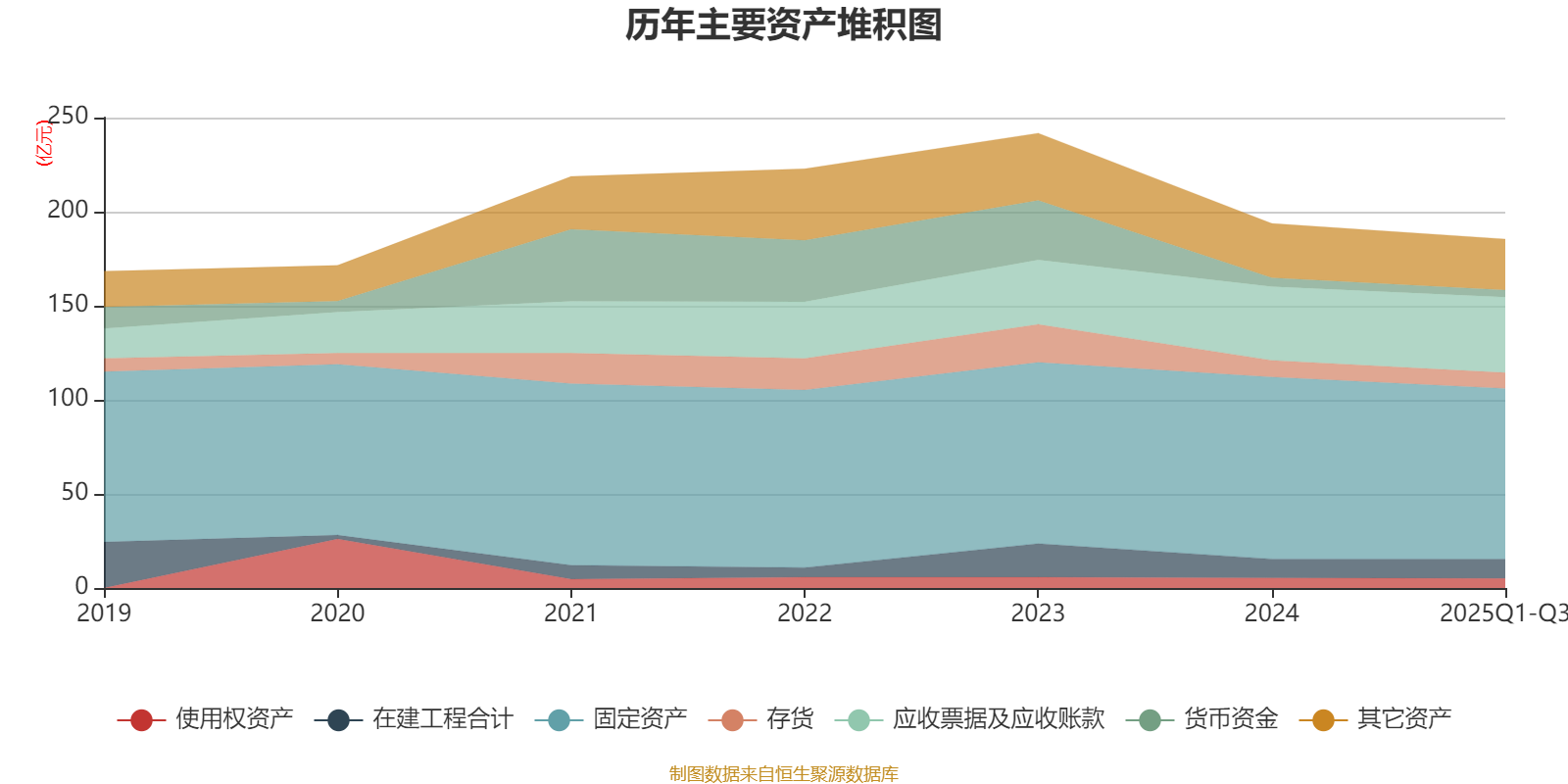 资产重大变化方面,截至2025年三季度末,公司应收票据及应收账款较上年末增加2.42%,占公司总资产比重上升1.42个百分点;固定资产较上年末减少6.27%,占公司总资产比重下降1.03个百分点;应收款项融资较上年末减少80.27%,占公司总资产比重下降0.39个百分点;在建工程合计较上年末增加2.74%,占公司总资产比重上升0.38个百分点。