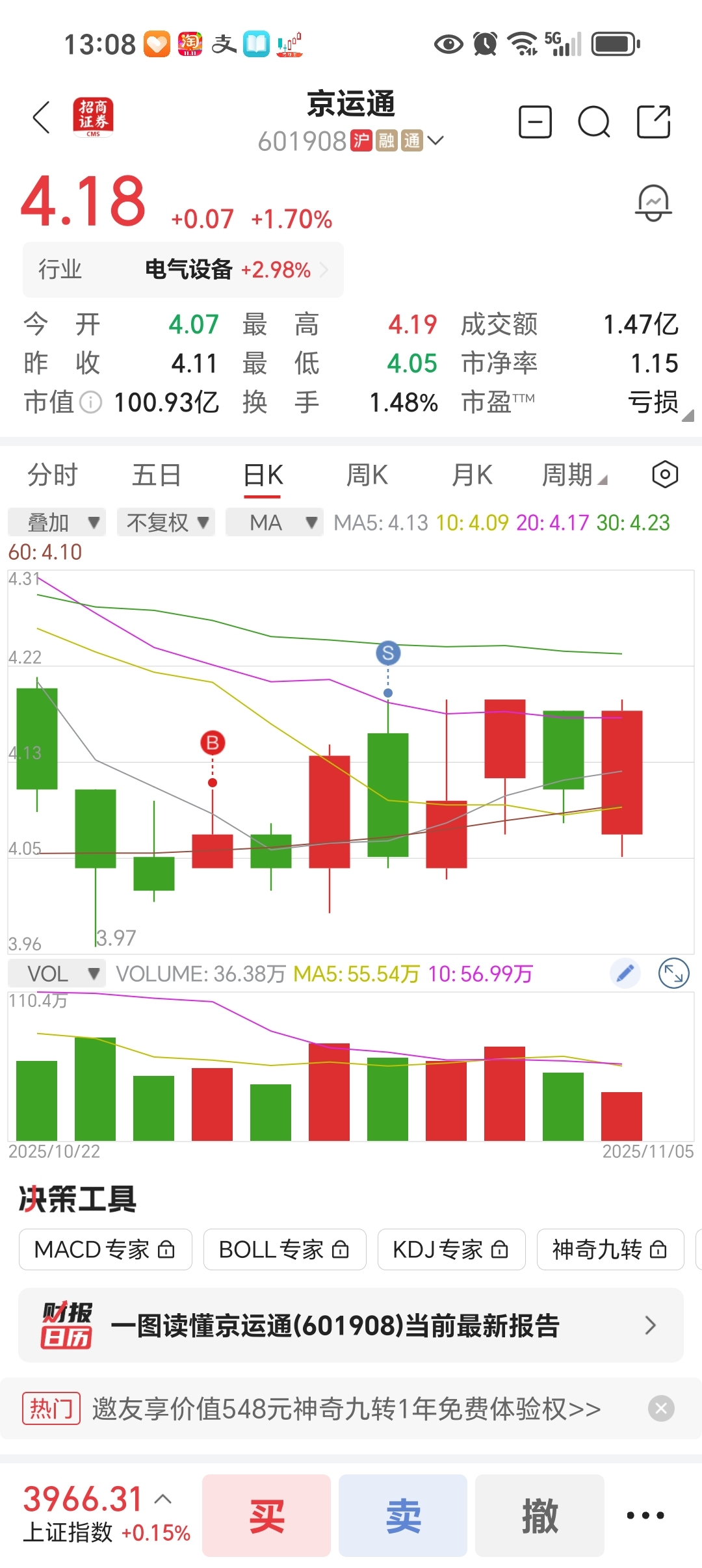 $京运通(SH601908)$ 神奇的股票,天天在4元到4.20之间排徊,