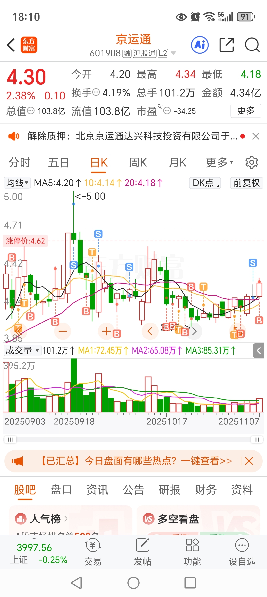 $京运通(SH601908)$ 昨天清仓,今天又追高进了,