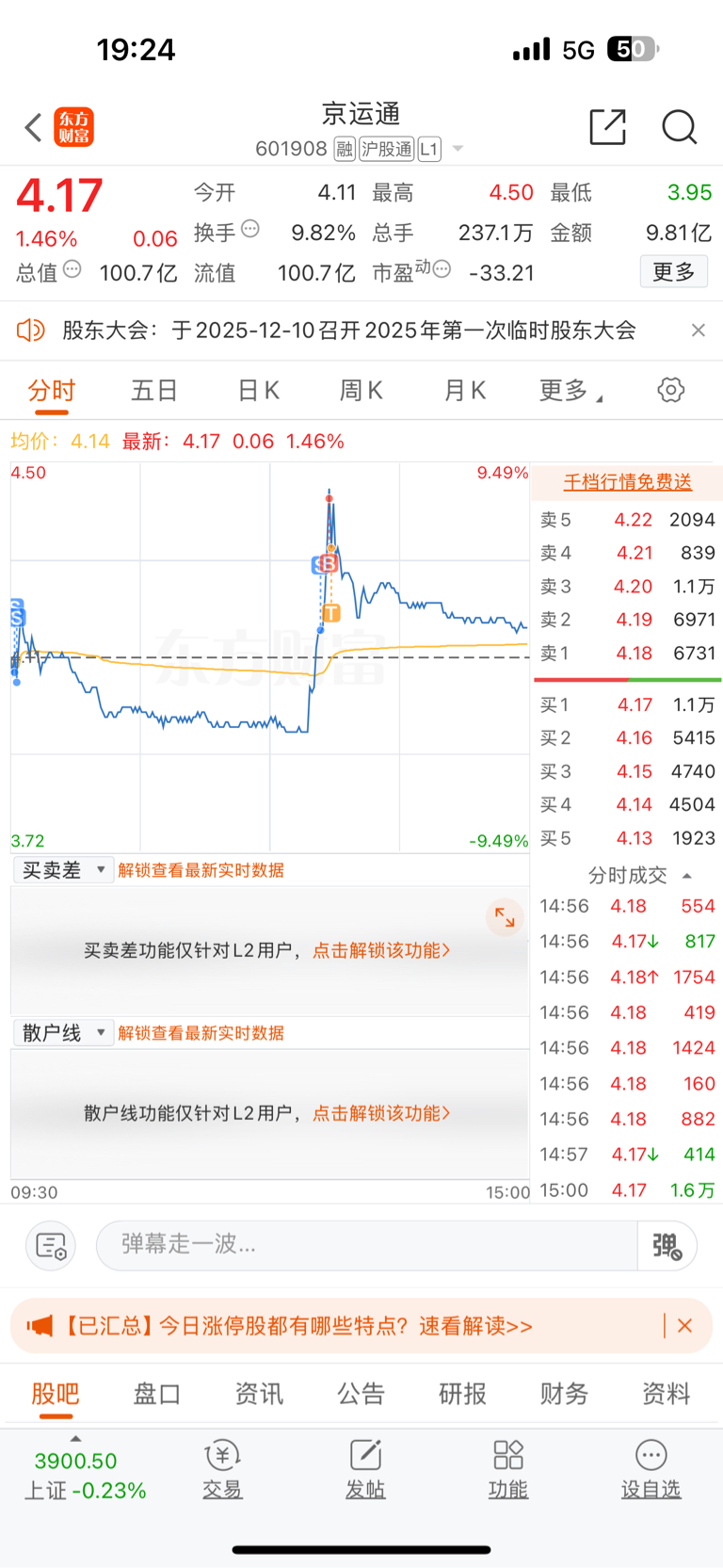 $京运通(SH601908)$ 早上卖了,冲动又追高进来,还全仓。