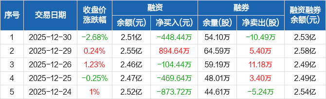 京运通:融资净偿还448.44万元,融资余额2.51亿元(12-30)