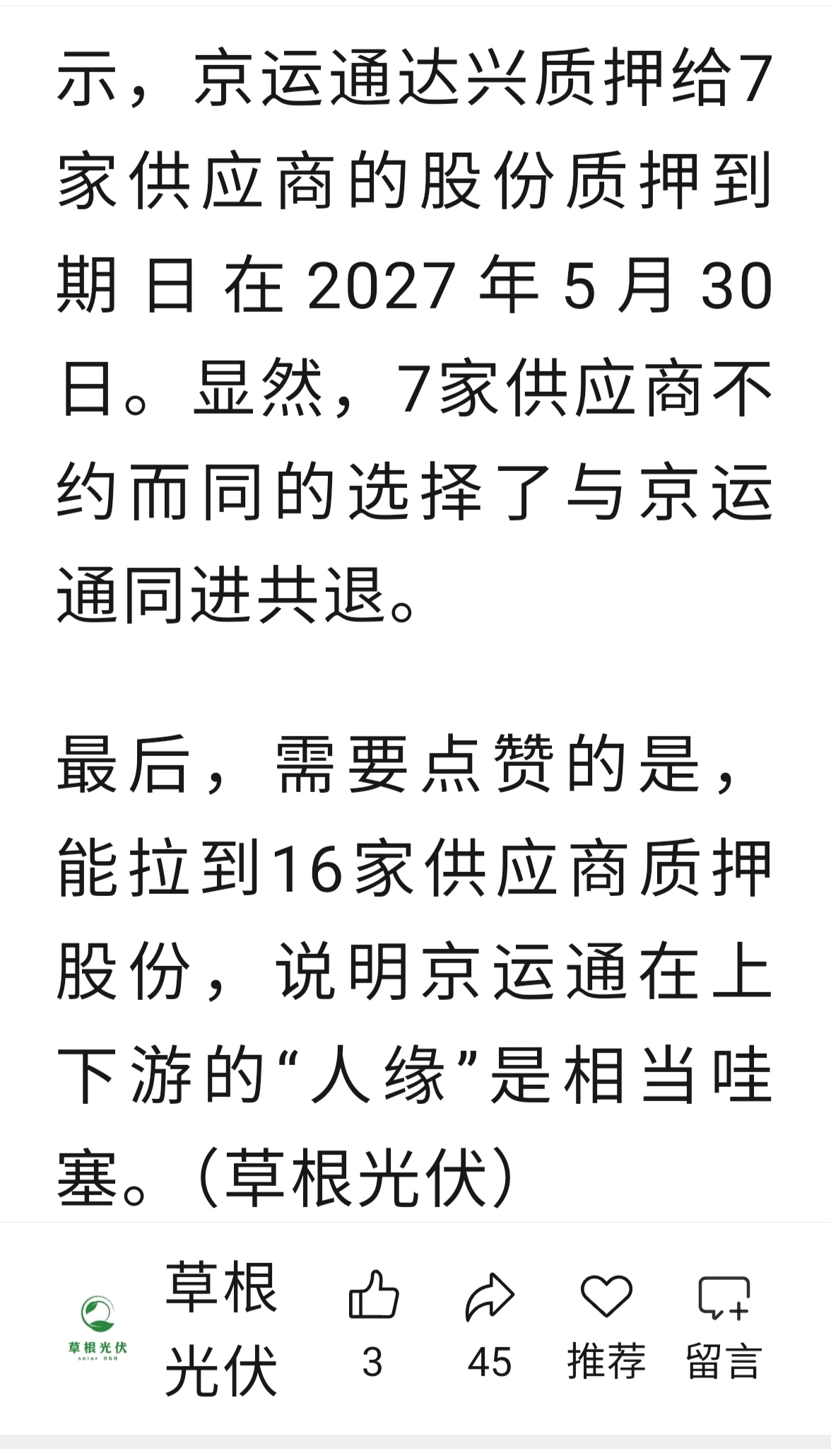 $京运通(SH601908)$