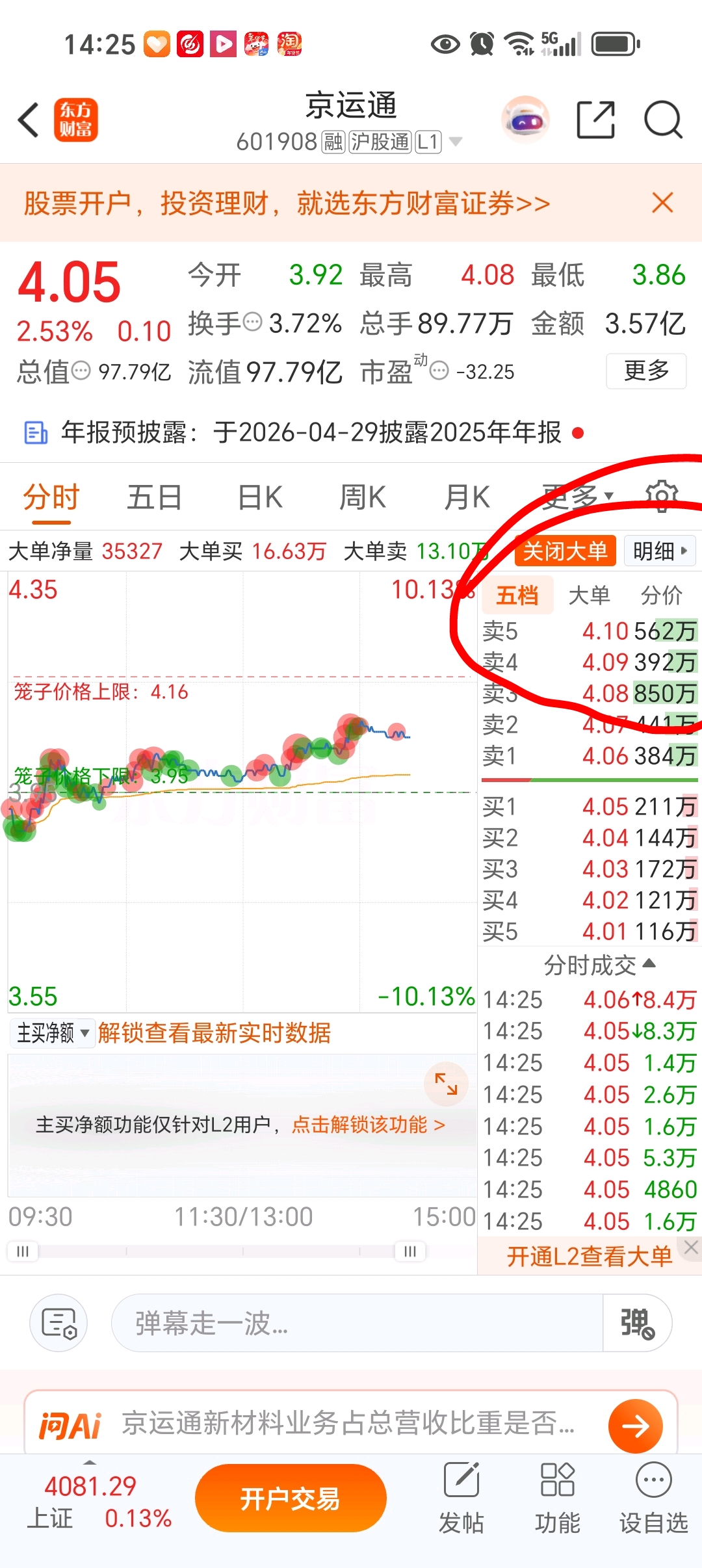 $京运通(SH601908)$ 有点看不懂这种,是不是这样的408的压单,不让上涨?主力压的?怕别人来抢他的筹码?