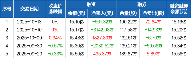 浙商银行:融资净偿还661.32万元,融资余额15.1亿元(10-13)