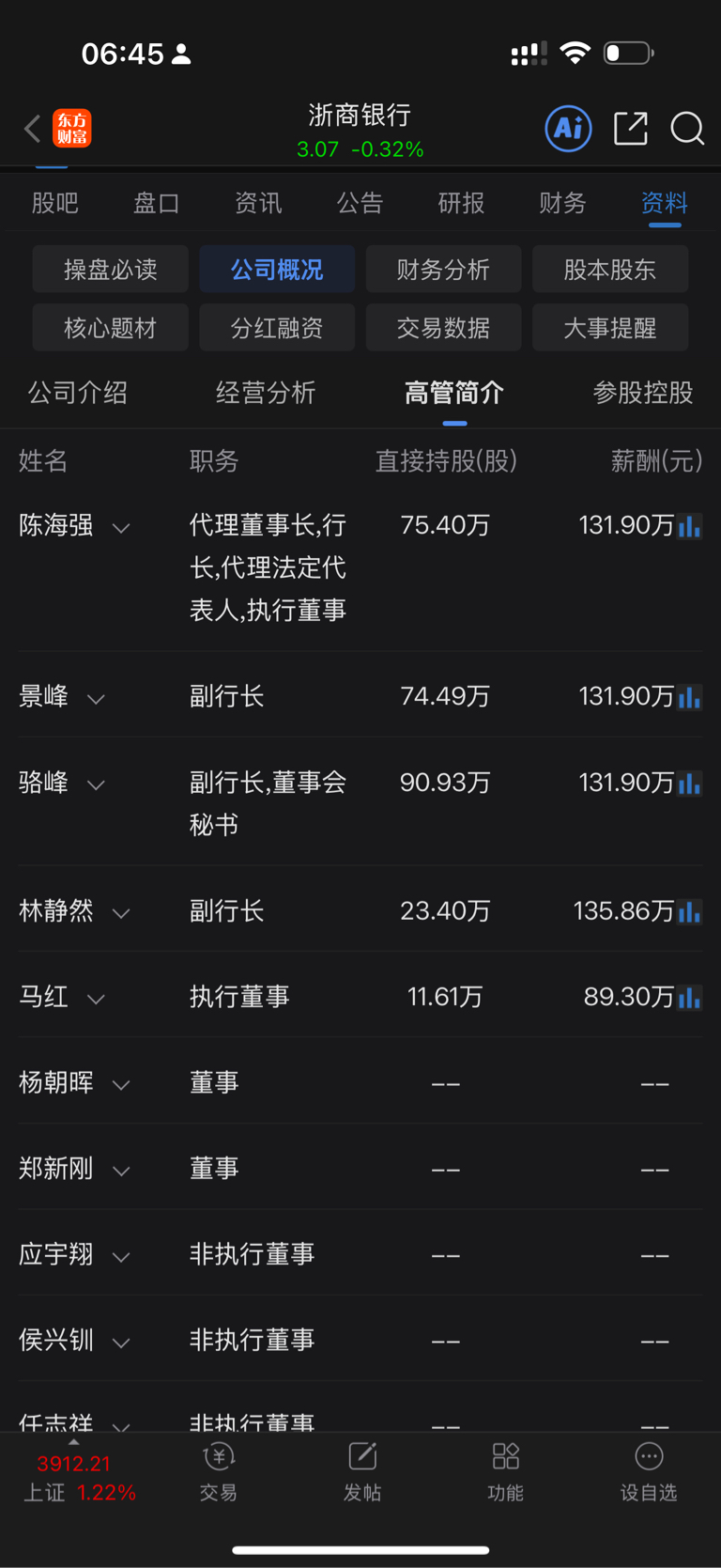 $浙商银行(SH601916)$ 行长们啥时候买了这么多股份