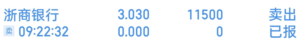 $浙商银行(SH601916)$ 早上集合竞价挂的3.03一天都没卖出去,离谱!